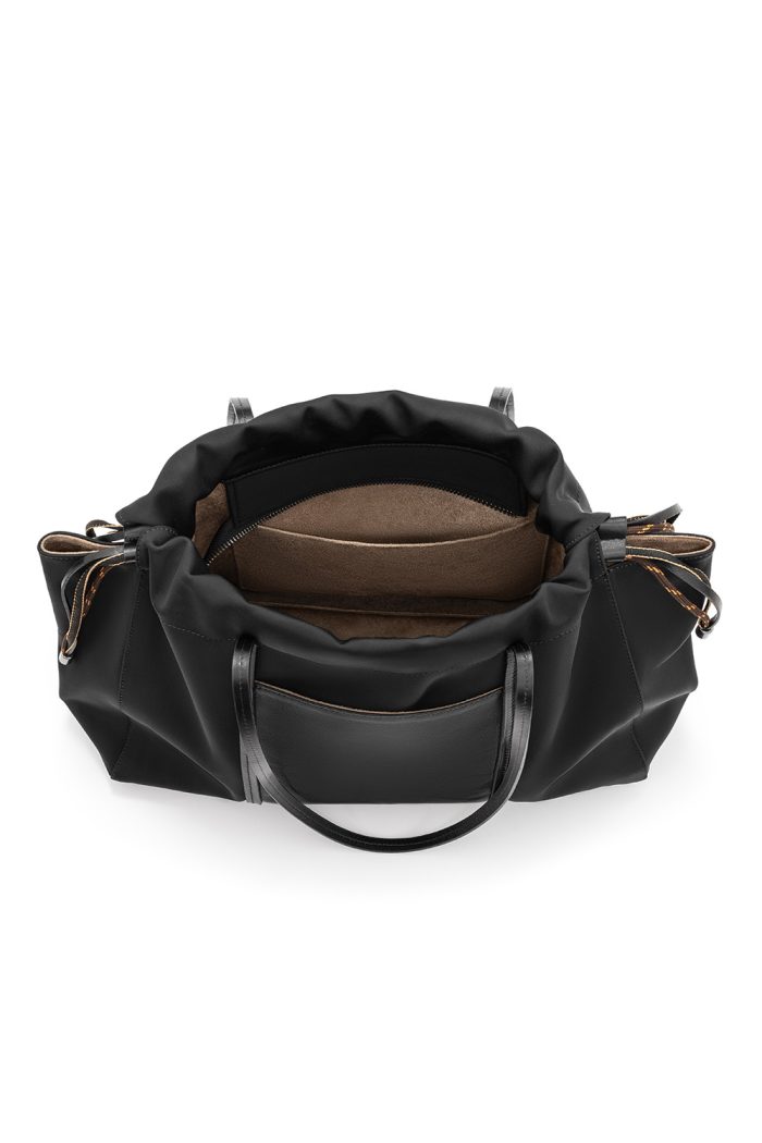 • Feita em nylon prada com acabamentos em couro legítimo
